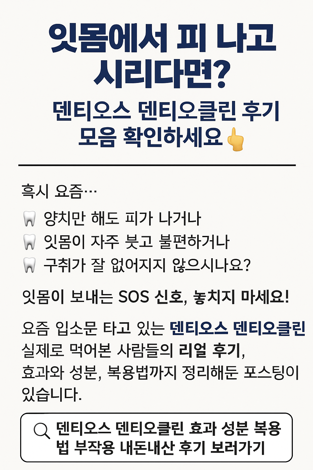 🔎 덴티오스 덴티오클린 효과 성분 복용법 부작용 내돈내산 후기 보러가기